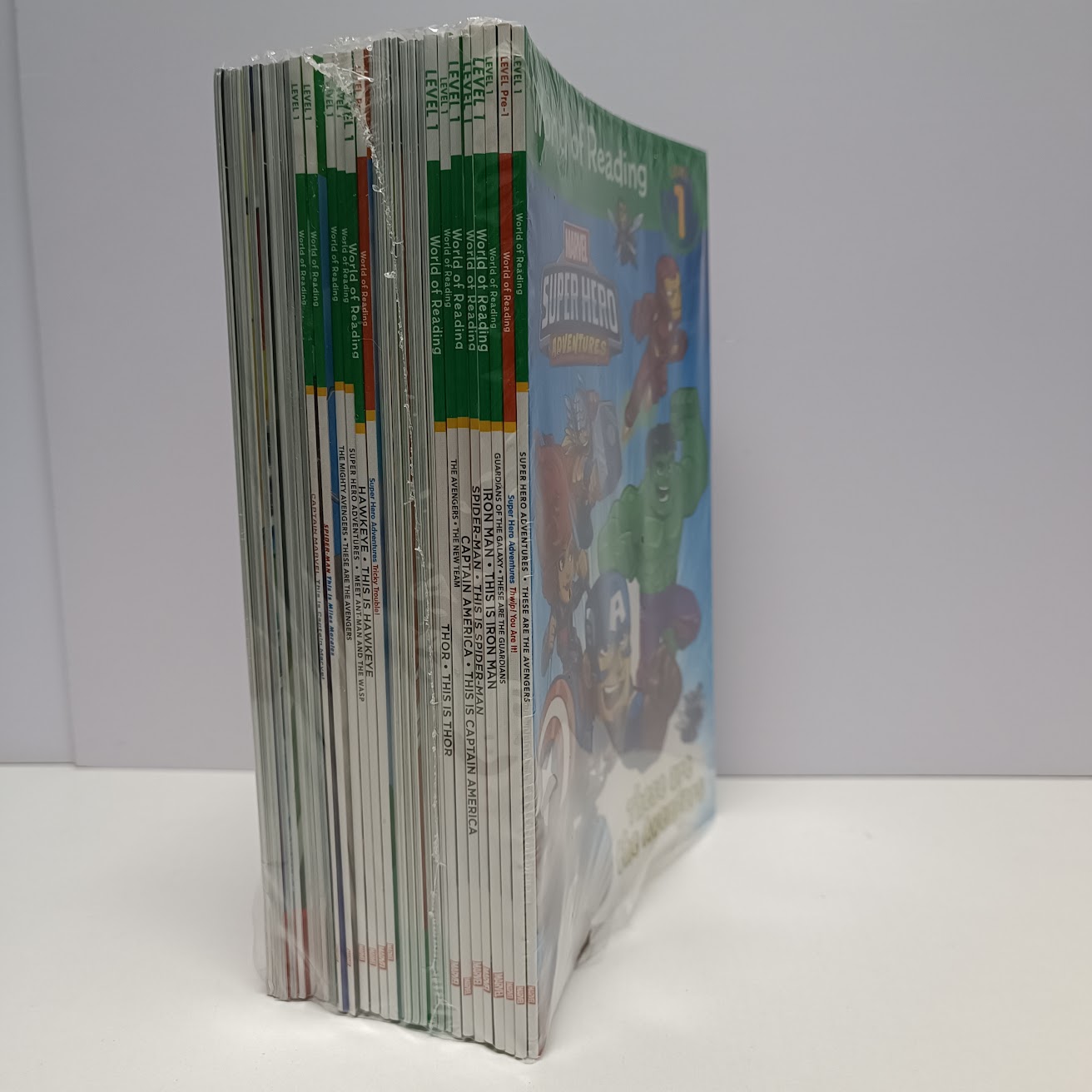 31 books set Marvel Comic World of reading 01:World of Reading Super Hero Adventures: Tricky Trouble! 02:World of Reading Super Hero Adventures: Thwip! You Are It!: Level Pre-1 03:Level 1:This is X-Man 04:Level 1:This is Iron Man 05:Level 1:This is Spider Man 06: Level 1:This is Captain America 07:Level 1:This is Thor 08:Level 1:This is Wolverine 09:Level 1:This is Ant-Man 10:Level 1:This is Black Widow 11:Level 1:This is Falcon 12:Level 1:This is Hulk 13:Level 1:This is Iron Man 14:Level 1:This is Hawkeye 15:World of Reading:This is Captain Marvel (Level 1) 16:World of Reading: Black Panther This is Black Panther (Level 1) 17:World of Reading:The Mighty Avengers(Level 1) 18:World of Reading: The mighty Thor (Level 1) 19:World of Reading :Super Hero Adventures: Meet Ant-Man and the Wasp (Level 1) 20:World of Reading Super Hero Adventures: These are the Avengers (Level 1) 21:World of Reading: Avengers The New Team(Level 1) 22:World of Reading: Guardians of the Galaxy (Level 1) 23:World of Reading: This is Miles Morales(Level 1) 24:World of Reading: Ant-Man Game Over(Level 2) 25:World of Reading: Falcon Fear of Flying (Level 2 26:World of Reading: The Story of Iron Man(Level 2) 27:World of Reading: The Story of the X-Men (Level 2) 28:World of Reading: Spider-Man Down to a Science!(Level 2) 29:World of Reading: The Amazing Spider-man (Level 2) 30:World of Reading: Avengers: Battle With Ultron(Level 2) 31:World of Reading: Guardians of the Galaxy (Level 2) Size 23cm x 15c32 pages per book